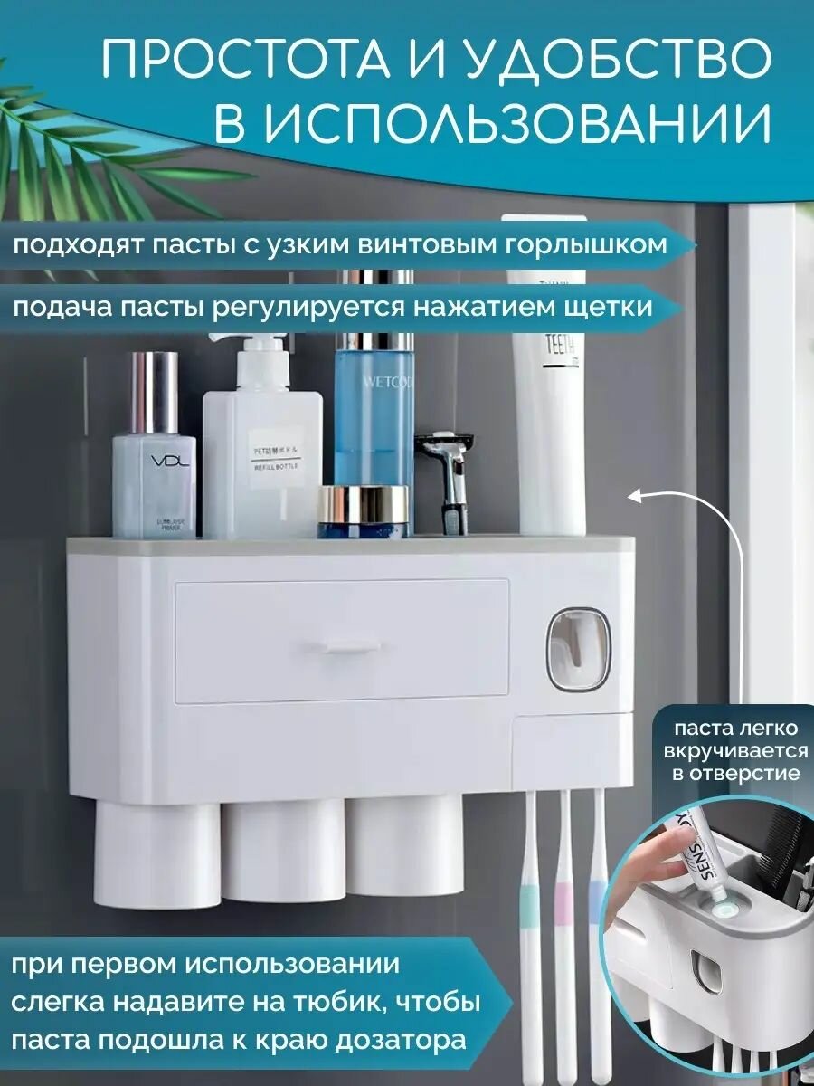 Дозатор для зубной пасты есосо - это многофункциональный органайзер, который поможет вам поддерживать порядок в ванной комнате и сделает ее использование более комфортным.