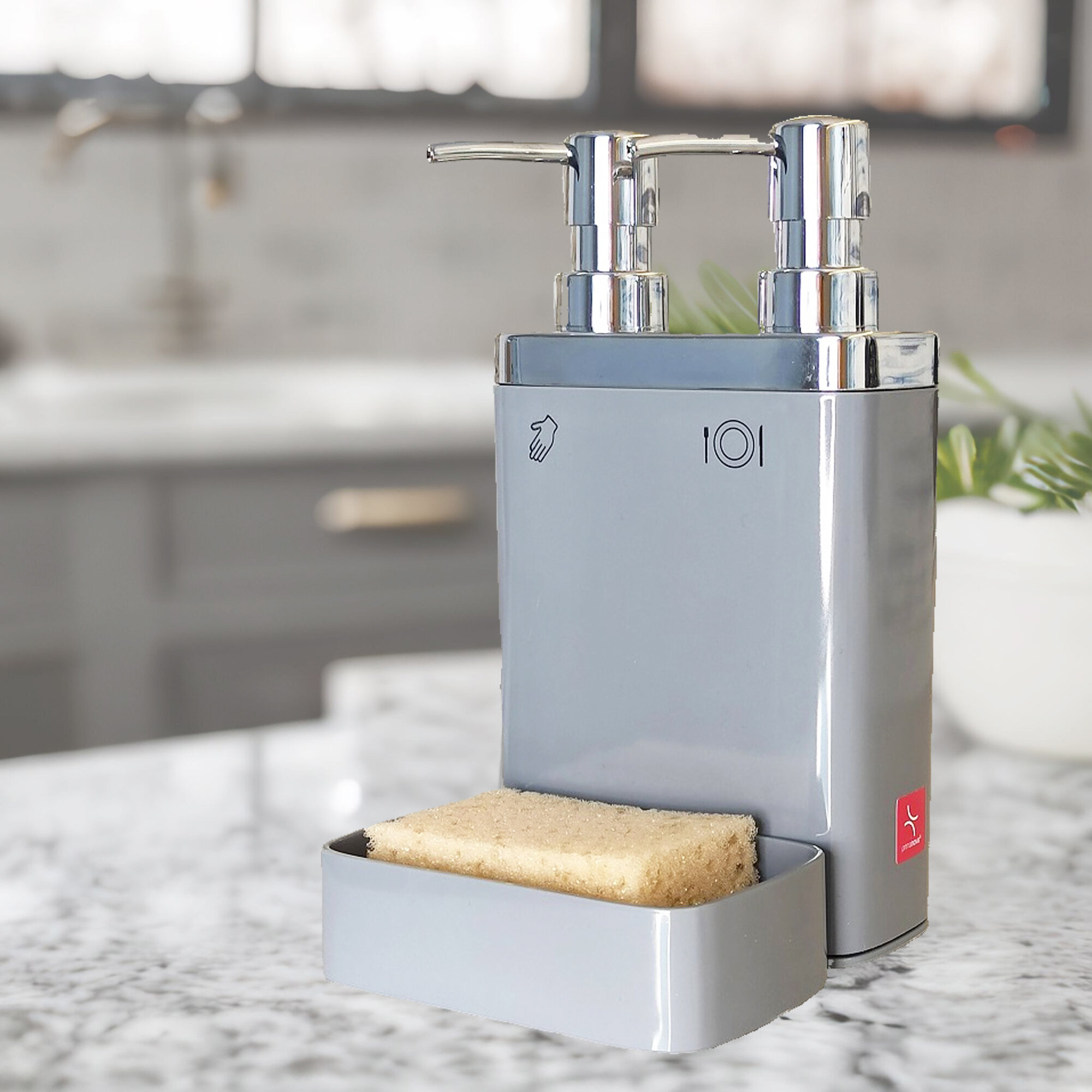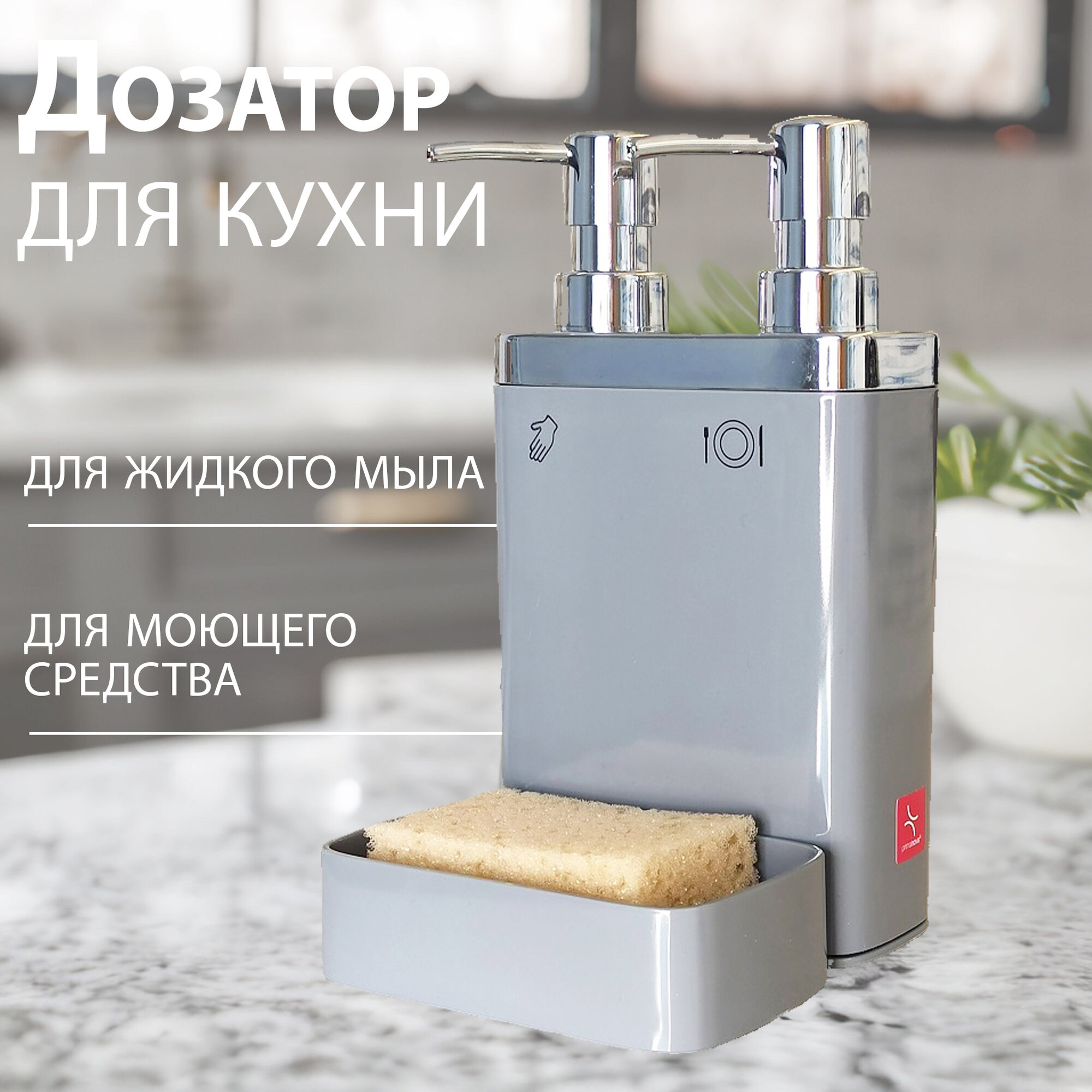 Купить Дозатор кухонный серый двойной с отделением для губки PRIMANOVA с доставкой по всей России. Дозатор кухонный серый двойной с отделением для губки PRIMANOVA: сравнение цен, характеристики, фото, актуальное наличие и цены.