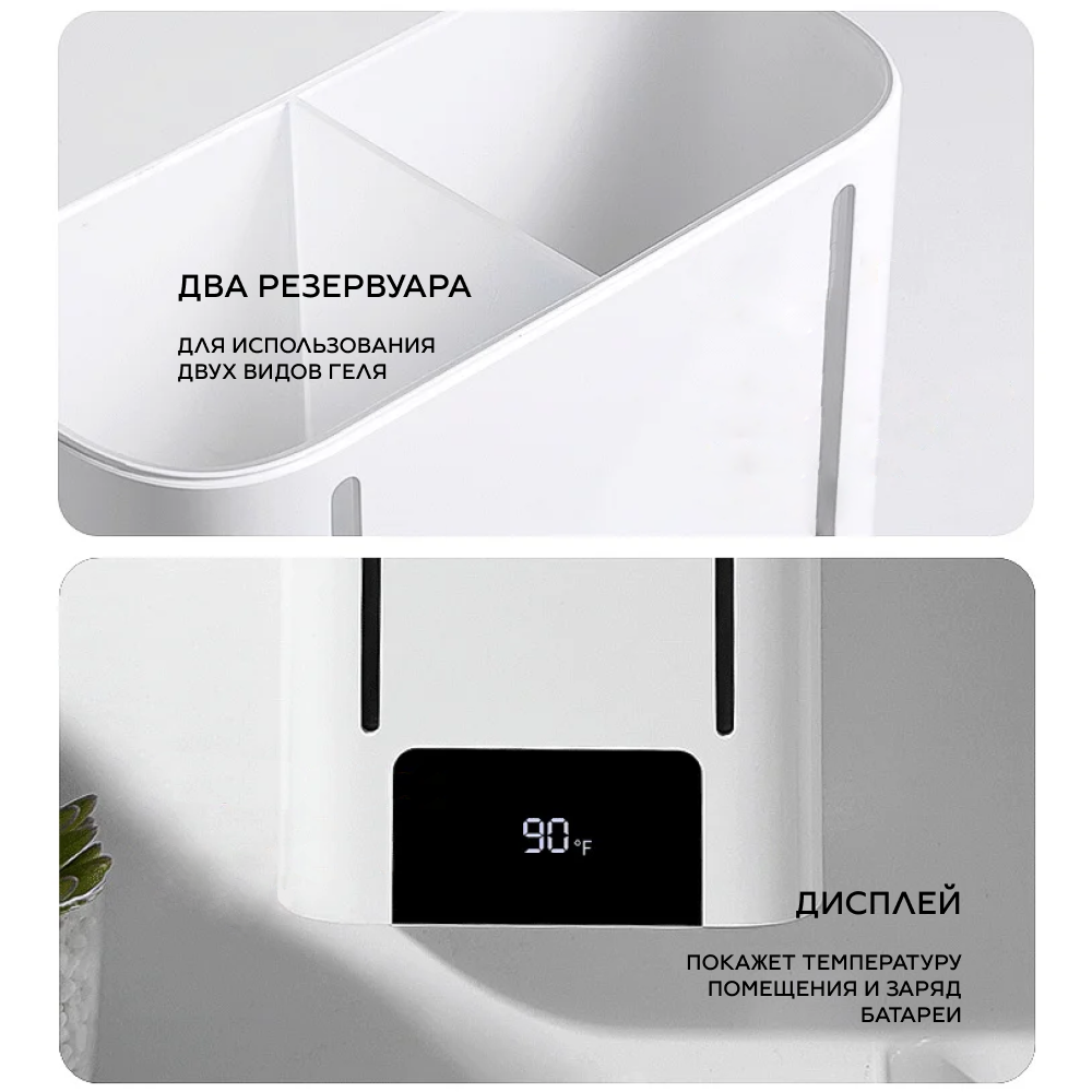 Дозатор с двумя емкостями вместимостью по 800 мл каждая может использоваться как в ванной комнате, так и на кухне. Устройство заряжается быстро и безопасно через кабель Type-C благодаря встроенному аккумулятору емкостью 2000 мАч, которого хватает на более чем 2 месяца работы без подзарядки.