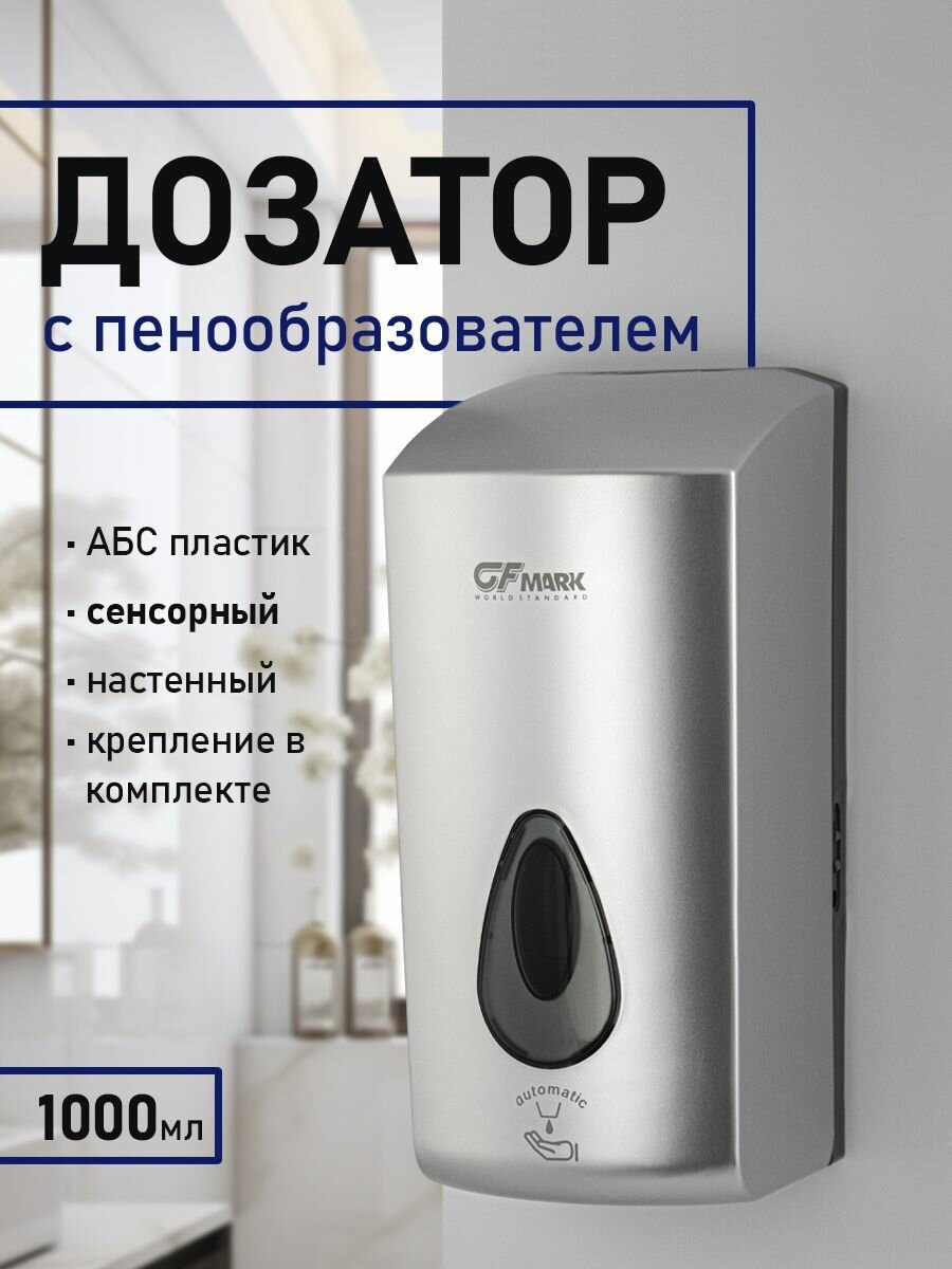 Дозатор сенсорный GFmark, пена, пластик АБС, серый, большой, с глазком — капля, 1000 мл.: сравнение цен, характеристики, фото, актуальное наличие и цены.