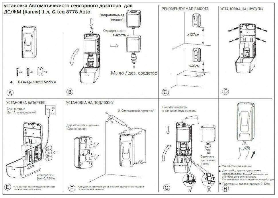 Материал: пластик Тип: наливной Цвет: белый Объем: 1000 мл Тип подачи: капля Тип питания: батарейки Способ подачи: сенсор Дополнительно: смотровое окно Габаритные размеры: высота - 250 мм, ширина - 120 мм, глубина - 110 мм Гарантия 6 месяцев Страна производитель Китай