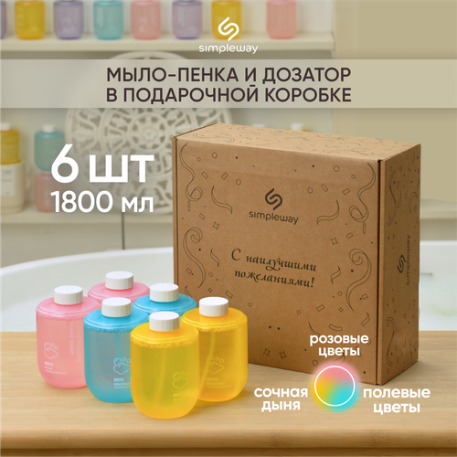 Подарочный набор SimpleWay нежная, но плотная пенка, сладкий ненавязчивый аромат дыни, свежий аромат дикого колокольчика и аромат цветов, питание и увлажнение кожи – все это сочетается в нашем жидком мыле SimpleWay для дозатора. Мы знаем, как важно следить и ухаживать за собой, именно поэтому наша команда разработала специальный состав, позволяющий поддерживать кожу ваших рук молодой и нежной. В наборе для пенного дозатора шесть сменных блоков для диспенсера по 300 мл с разными ароматами для бесконтактного мытья. Благодаря тому, что жидкое мыло вспенивается внутри сенсорного дозатора, поверхность сантехники остается сухой и чистой. Дозатор превращает раствор в воздушную пену, что позволяет экономично использовать блок: вы можете пользоваться им почти два месяца подряд без покупки нового картриджа. Мягкая формула универсального мыла обеспечивает бережный уход за чувствительной кожей. Нежная пенка поможет легко и быстро приучить детей к мытью рук. Это очень удобная система, в которую установлен инфракрасный датчик. Когда в зону действия датчика попадают руки, запускается система подачи пенки. Детское мыло-пенка для рук и тела и сменные блоки для бесконтактного автоматического дозатора станут отличным решением для дома: для кухни, для ванной, для стирки, а также для офиса, детского сада и школы. Это удобная система, которая чаще всего устанавливается в ванной комнате. Материал сменных блоков – безопасный пластик, который поддается переработке. Для нашей компании важно, чтобы процесс поддержания собственной красоты добавлял удовольствие в вашу жизнь и не вредил окружающей среде. Для замены емкости необходимо открыть сменный блок, вставить его снизу и повернуть по часовой стрелке для надежного закрепления. Это отличный подарок как женщинам, так и мужчинам на любой праздник. Благодаря своей уникальной формуле, подходит для использования как для рук, так и для лица, тела и даже волос. Порадуйте себя и своих близких средством для дозатора Soap Dispenser, который обеспечит достойный уровень гигиены.