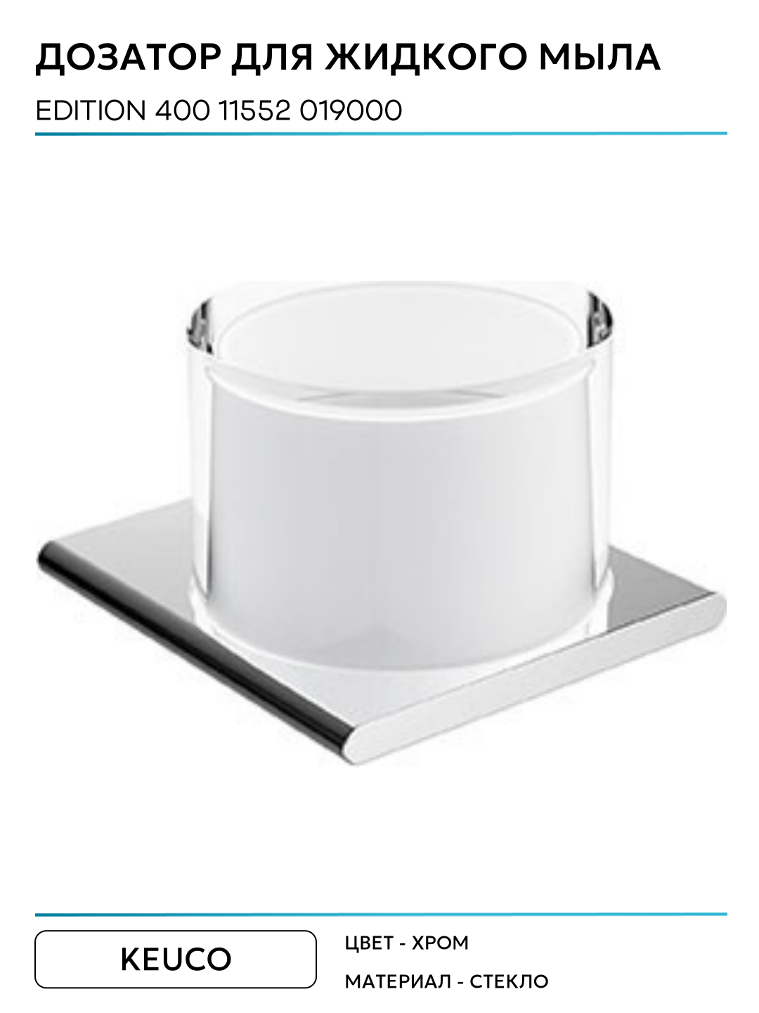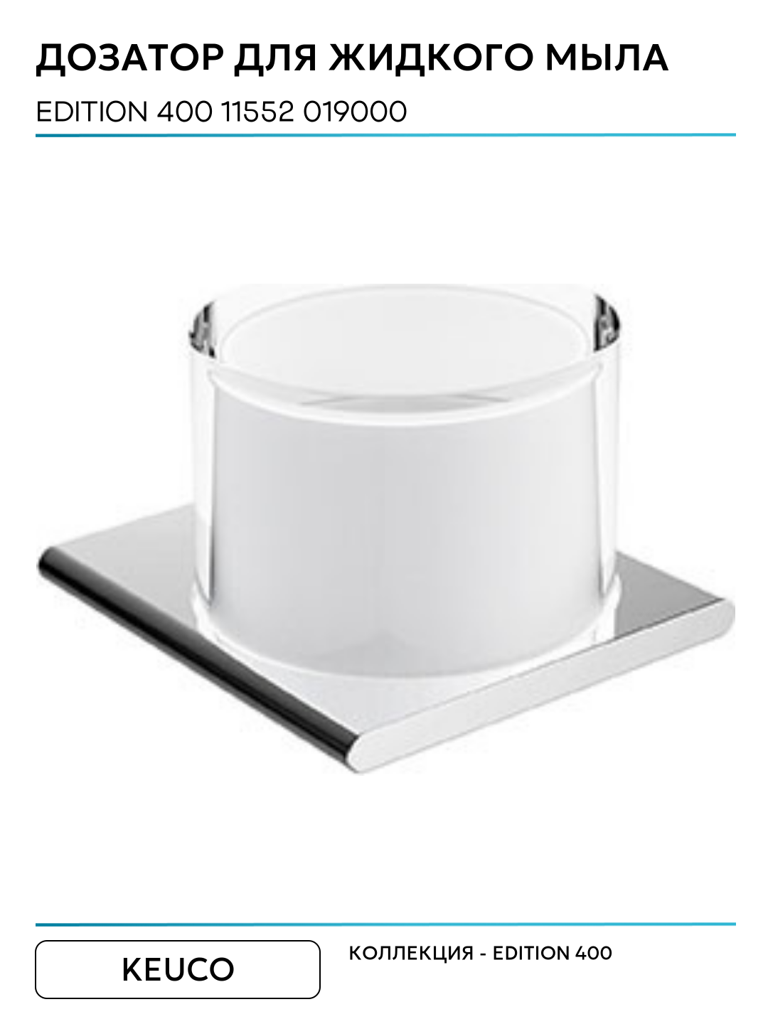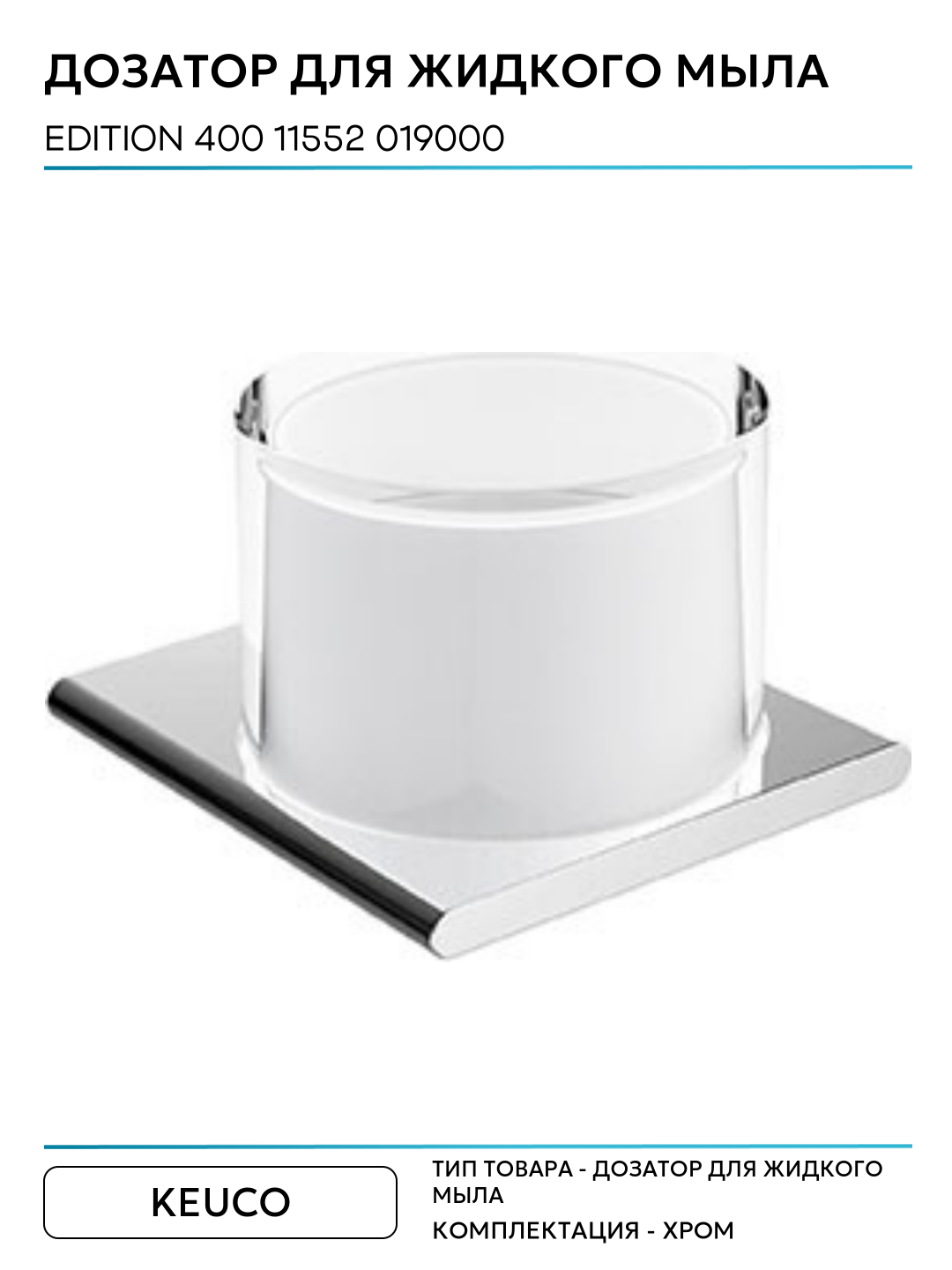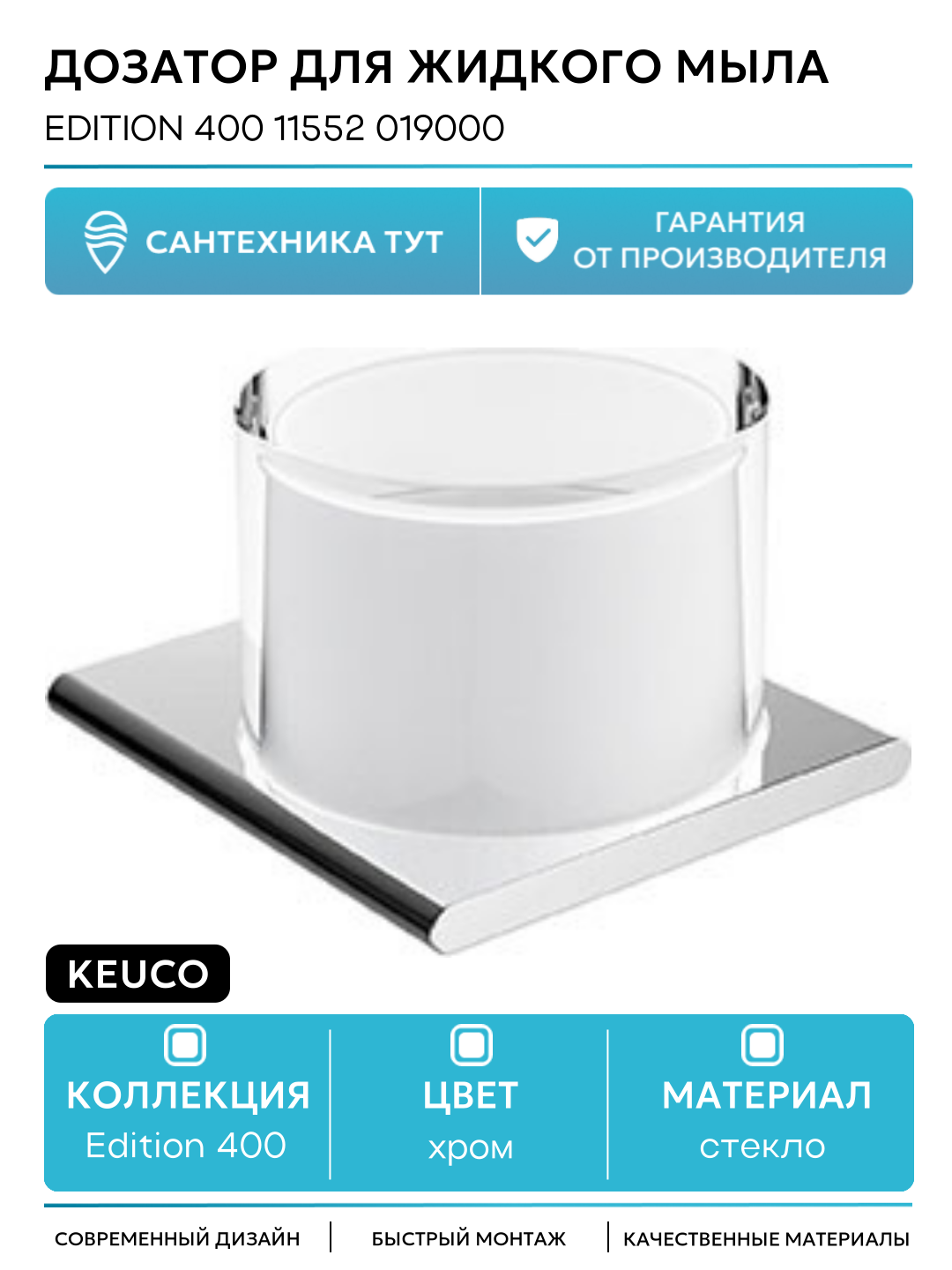 Купить Дозатор жидкого мыла Keuco Edition 400 11552 019000 Хром с доставкой по всей России. Дозатор жидкого мыла Keuco Edition 400 11552 019000 Хром: сравнение цен, характеристики, фото, актуальное наличие и цены.