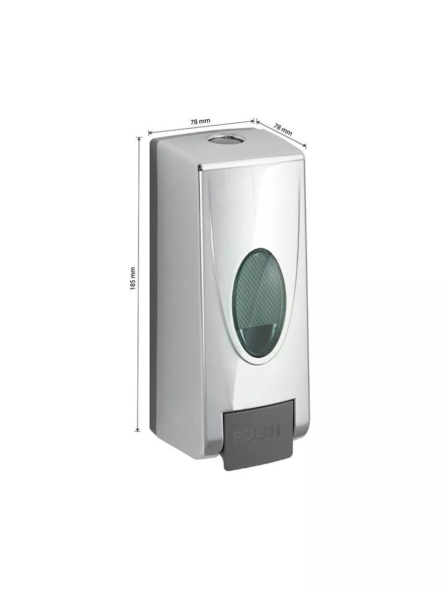Механический дозатор для жидкого мыла хромированный предназначен для установки в любых санитарногигиенических комнатах. Имеет ключ и пластиковый замок. Дозатор прост в эксплуатации достаточно нажать на кнопку для получения порции средства. Для удобства контроля за уровнем мыла на лицевой поверхности есть смотровое окно. Корпус диспенсера изготовлен из прочного пластика АБС хромированный который выдерживает различные механические воздействия. В резервуар емкостью 350 мл можно заливать как жидкое мыло так и прочие средства/ Разместив диспенсер на стене достаточно время от времени проверять заполненность резервуара. Иного ухода он не требует не нуждается в замене батареек. Это отличное решение как для частных владений так и для гостиниц кафе столовых и прочих общественных мест. Габаритные размеры: высота 185 мм ширина 78 мм глубина 78 мм. Вес 0300 кг объем 000177 м3.