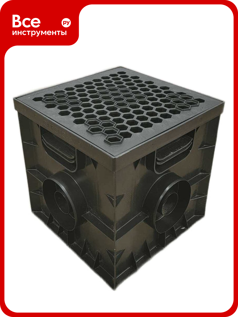 Купить Дождеприемник Gidrolica 300×300 мм в сборе с чугунной решеткой соты под трубу Ø 110 мм 2305/3 с доставкой по всей России.
