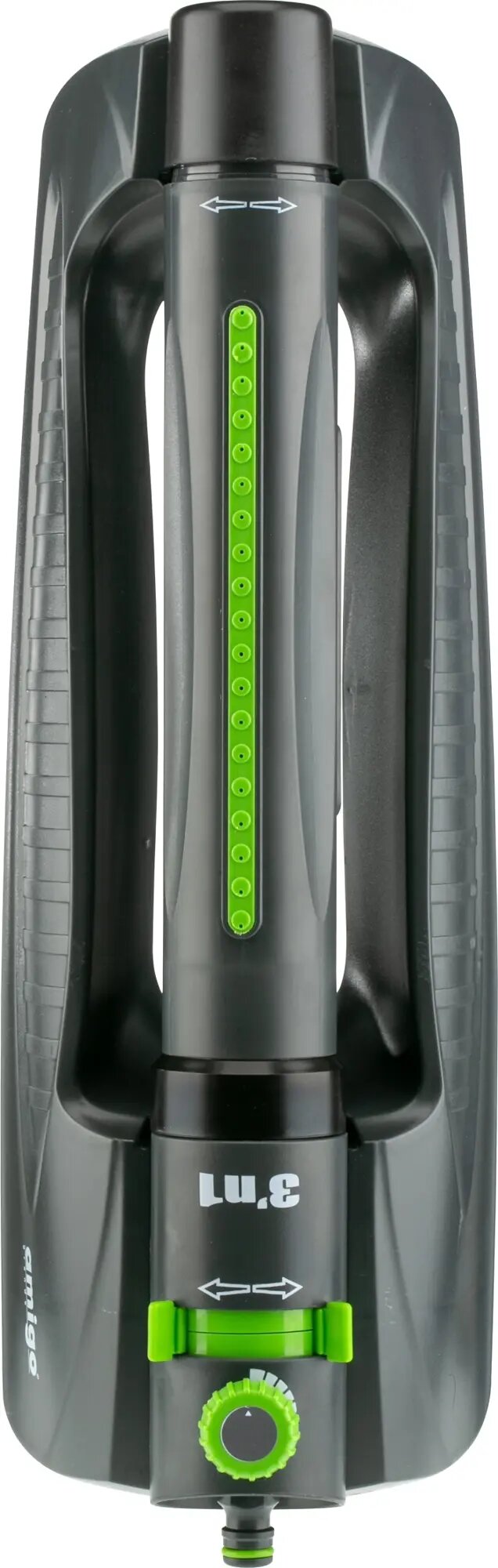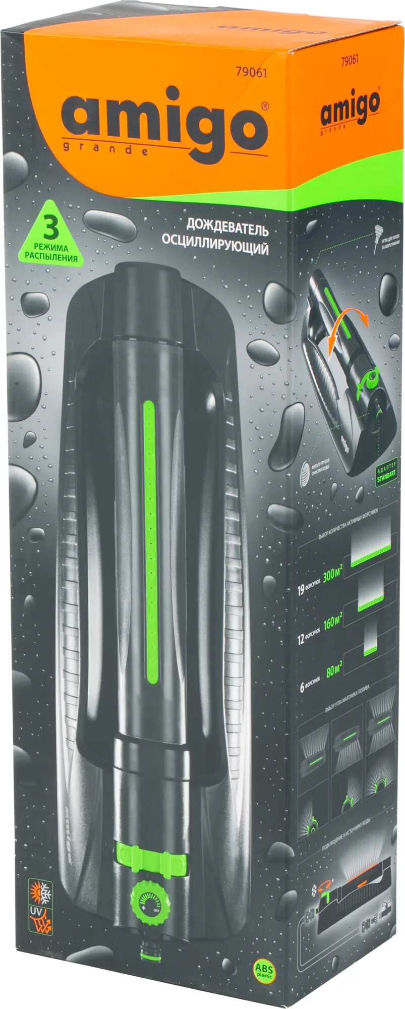 Дождеватель осциллирующий Amigo 79061 предназначен для равномерного полива газона. Корпус изготовлен из прочных материалов, устойчивых к негативному воздействию влаги, промерзанию и УФ-излучению. Пластиковые насадки легко разбираются и чистятся от известкового налета. В конструкции предусмотрена регулировка дальности и ширины полива.