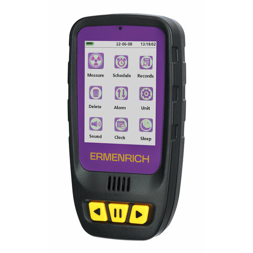 Дозиметр Ermenrich Ping RD40 измеряет гамма-, бета- и рентгеновское излучение в окружающей среде – воздухе, воде, продуктах питания, предметах обихода. Счетчик Гейгера-Мюллера считывает уровень излучения в диапазоне от 0,08 мкЗв до 50 мЗв меньше, чем за 10 секунд, а в случае опасно повышенной дозы – подает звуковой или световой сигнал.
