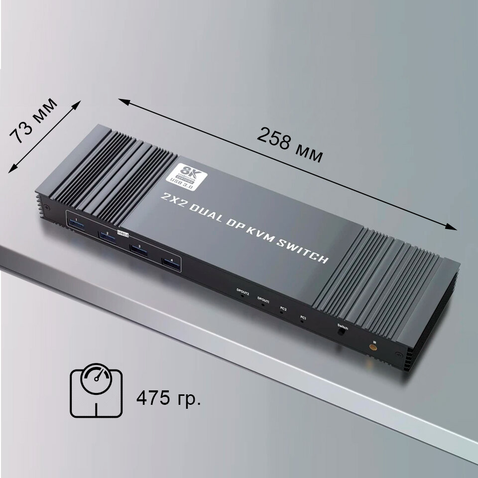 DP 1.4 KVM-переключатель, вход 2 компьютера, выход на 2 монитора, .