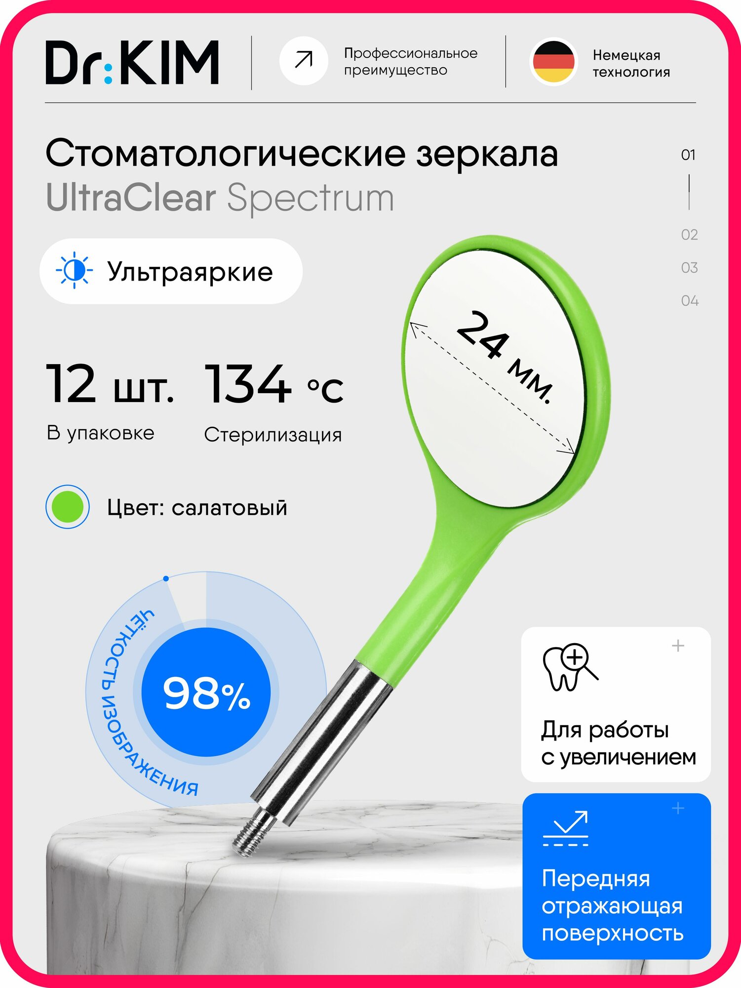 Купить Dr.Kim UltraClear Spectrum №5 -12 шт. набор стоматологических ультраярких зеркал, 24 мм, медицинский пластик салатовый с доставкой по всей России. Dr.Kim UltraClear Spectrum №5 -12 шт. набор стоматологических ультраярких зеркал, 24 мм, медицинский пластик салатовый: сравнение цен, характеристики, фото, актуальное наличие и цены.