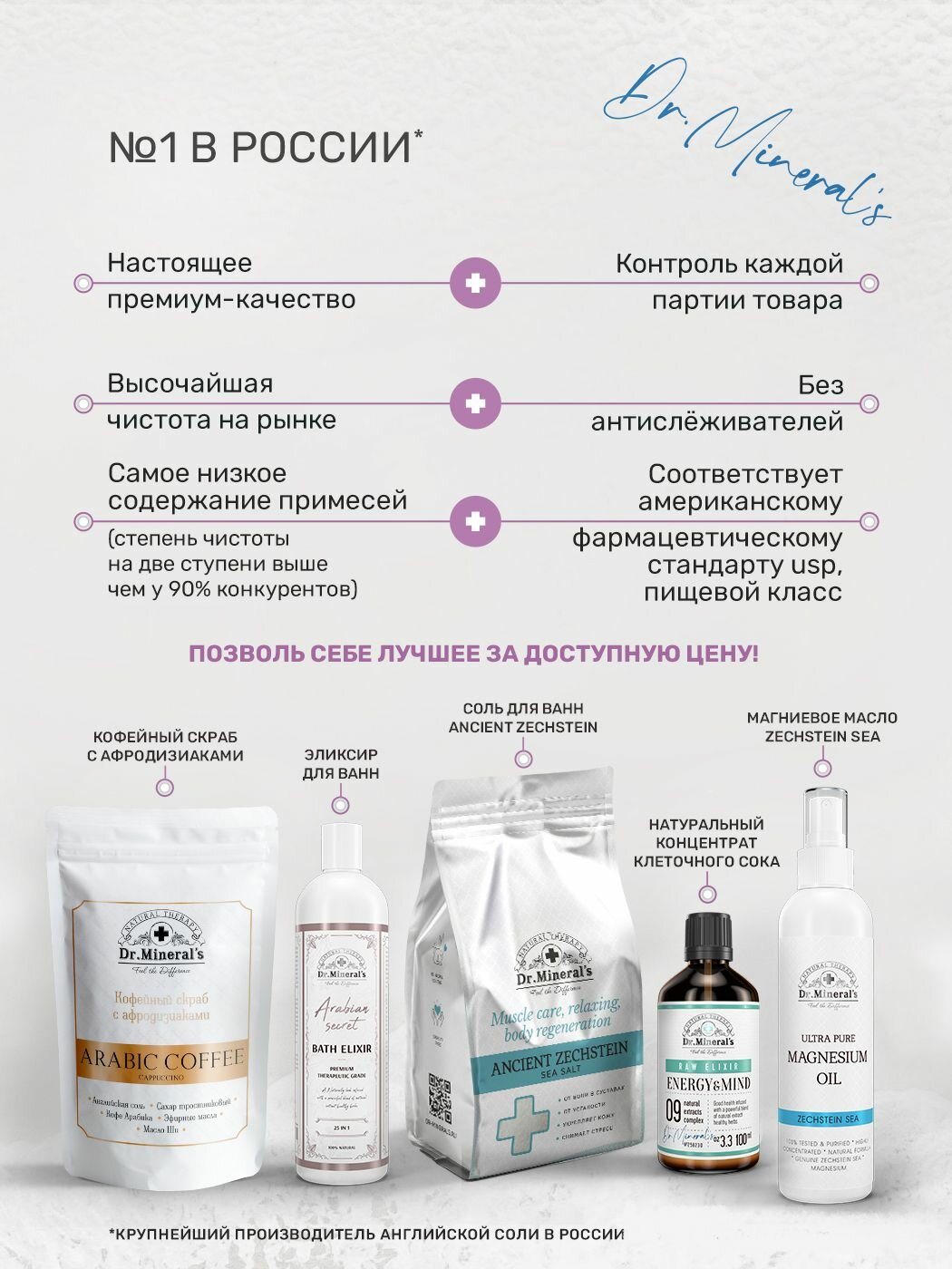 Если вам нужна расслабляющая соль для ванны, нормализующая нервную систему и кожу, Английская магниевая соль epsom от бренда Dr. Mineral's - это ваш выбор. Лучшее средство для купания.