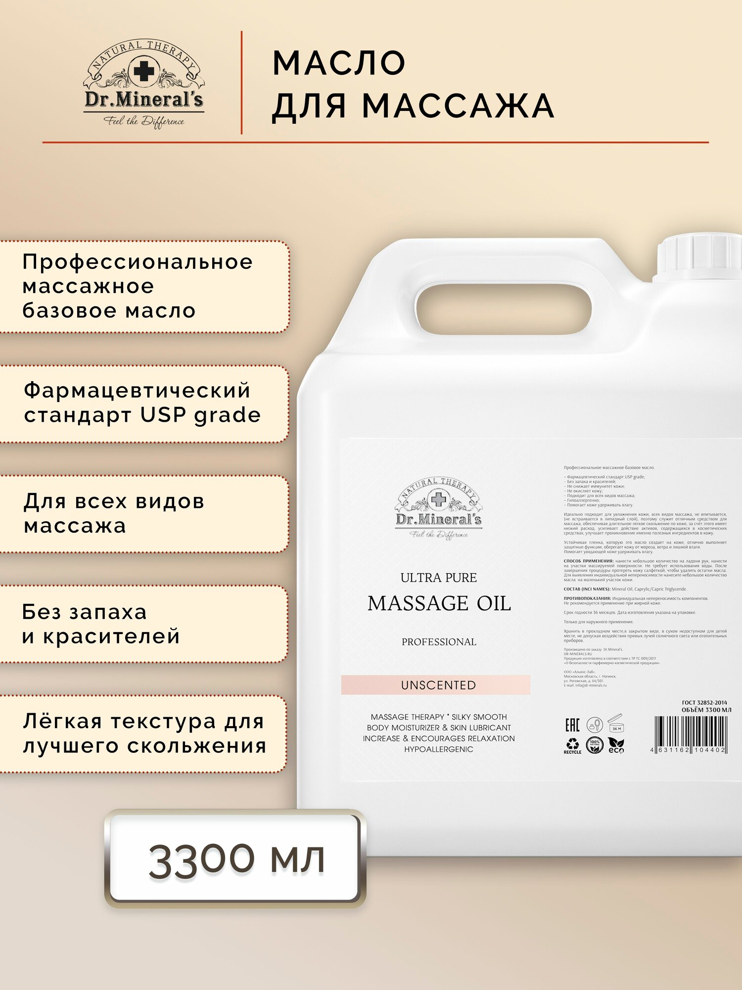 Купить Dr. Mineral’s. Чистое профессиональное базовое масло для массажа без запаха (PROFESSIONAL OIL), 3300 мл. с доставкой по всей России. Dr. Mineral’s. Чистое профессиональное базовое масло для массажа без запаха (PROFESSIONAL OIL), 3300 мл.: сравнение цен, характеристики, фото, актуальное наличие и цены.