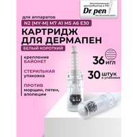 Dr.pen Картридж на 36 игл для дермапен A1 / A6 / M5 / M7 / N2 / MyM / E30 /А10 Белый байонет (30 шт.).