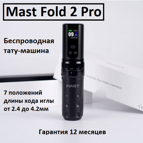 Беспроводная тату-машина Mast Tattoo Fold 2 Pro с изменяемой длиной хода иглы от 2,4 до 4,2 мм, с возможностью работать как от аккумулятора, так и от RCA.