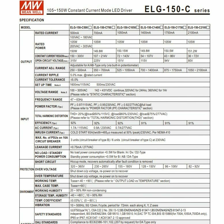 Купить Драйвер светодиодный (LED) с регулировкой тока 0.525.1.05А, 72.143в, 105вт, Mean Well ELG-150-C1050A с доставкой по всей России. Драйвер светодиодный (LED) с регулировкой тока 0.525.1.05А, 72.143в, 105вт, Mean Well ELG-150-C1050A: сравнение цен, характеристики, фото, актуальное наличие и цены.