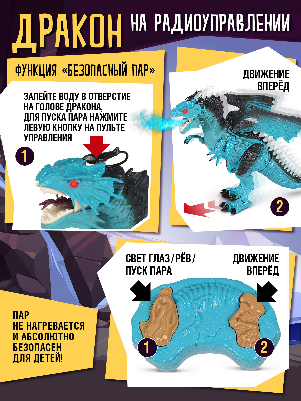 Дракон на радиоуправлении с паром на пульте управления, свет, звук, голубой, JB1168407: сравнение цен, характеристики, фото, актуальное наличие и цены.