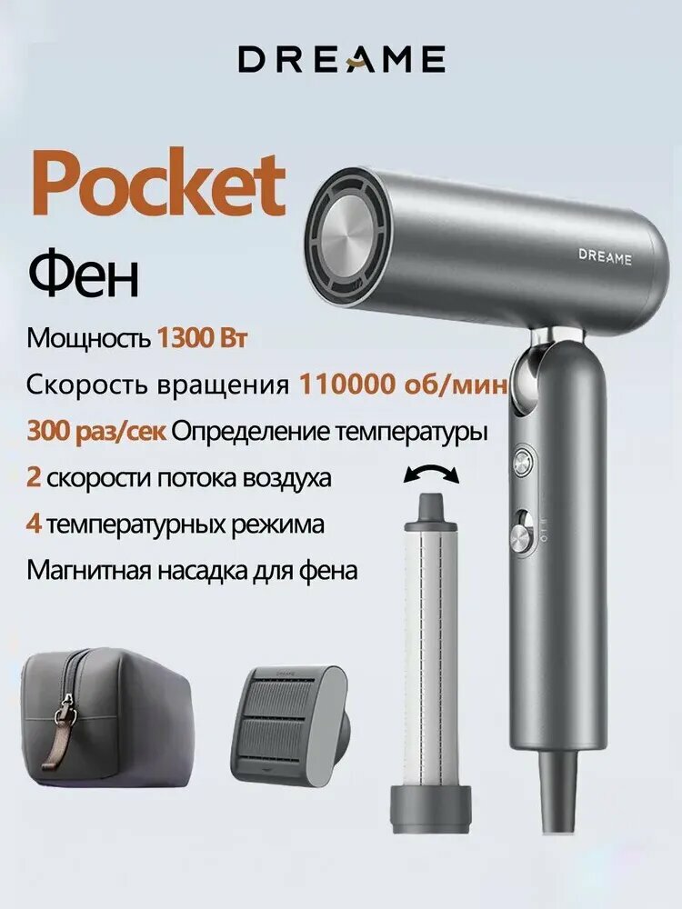 Dreame Фен-щетка для волос Pocket P10-AHD51 1200 Вт, скоростей 110000, кол-во насадок 2, серый: сравнение цен, характеристики, фото, актуальное наличие и цены.