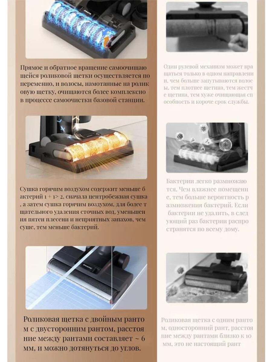 Тщательно убирайте, не беспокоя домашних животных, детей или других членов семьи. Бесщеточный двигатель, конструкция воздушного канала с оптимизированным уровнем шума, интеллектуальная регулировка мощности и мягкая щетка-валик обеспечивают бесперебойную очистку.