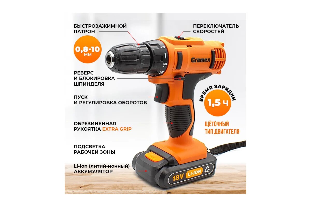 Дрель аккумуляторная Gramex HCD-18-2L (18В, пат-10мм, 2 скорости, аккум Li-Ion 2,0 А/ч) кейс, 2 акк (1/5) 4194: сравнение цен, характеристики, фото, актуальное наличие и цены.