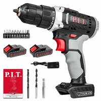 Дрель аккумуляторная, пластиковый кейс, зарядное устройство, 2 аккумулятора, руководство по эксплуатации, набор бит (10 шт), магнитный адаптер, сверло по дереву, сверло по металлу