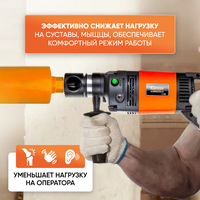 | Особенности конструкции | блокировка кнопки включения, дополнительная рукоятка, предохранительная муфта, пылеотвод, работа в стойке |