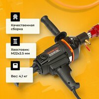 Кроме того, управление дрелью для алмазного бурения становится еще более удобным, так как она оснащена механизмом, который позволяет регулировать скорость вращения в зависимости от степени нажатия на курок. Благодаря этому вы сможете подстроить инструмент под конкретные условия работы, получая оптимальные результаты.