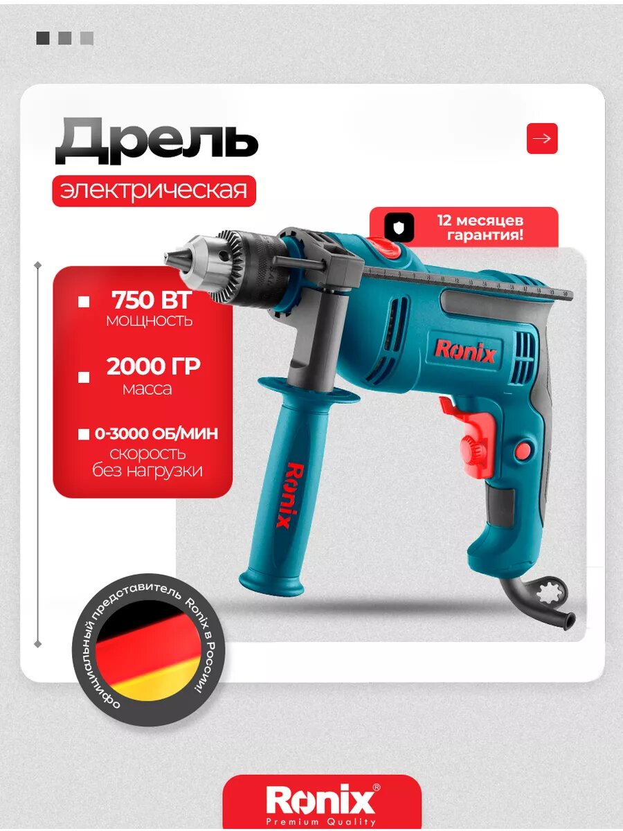 Дрель электрическая Ronix ударная мощность 750 Вт, 0-3000 об/мин патрон 13 мм: сравнение цен, характеристики, фото, актуальное наличие и цены.