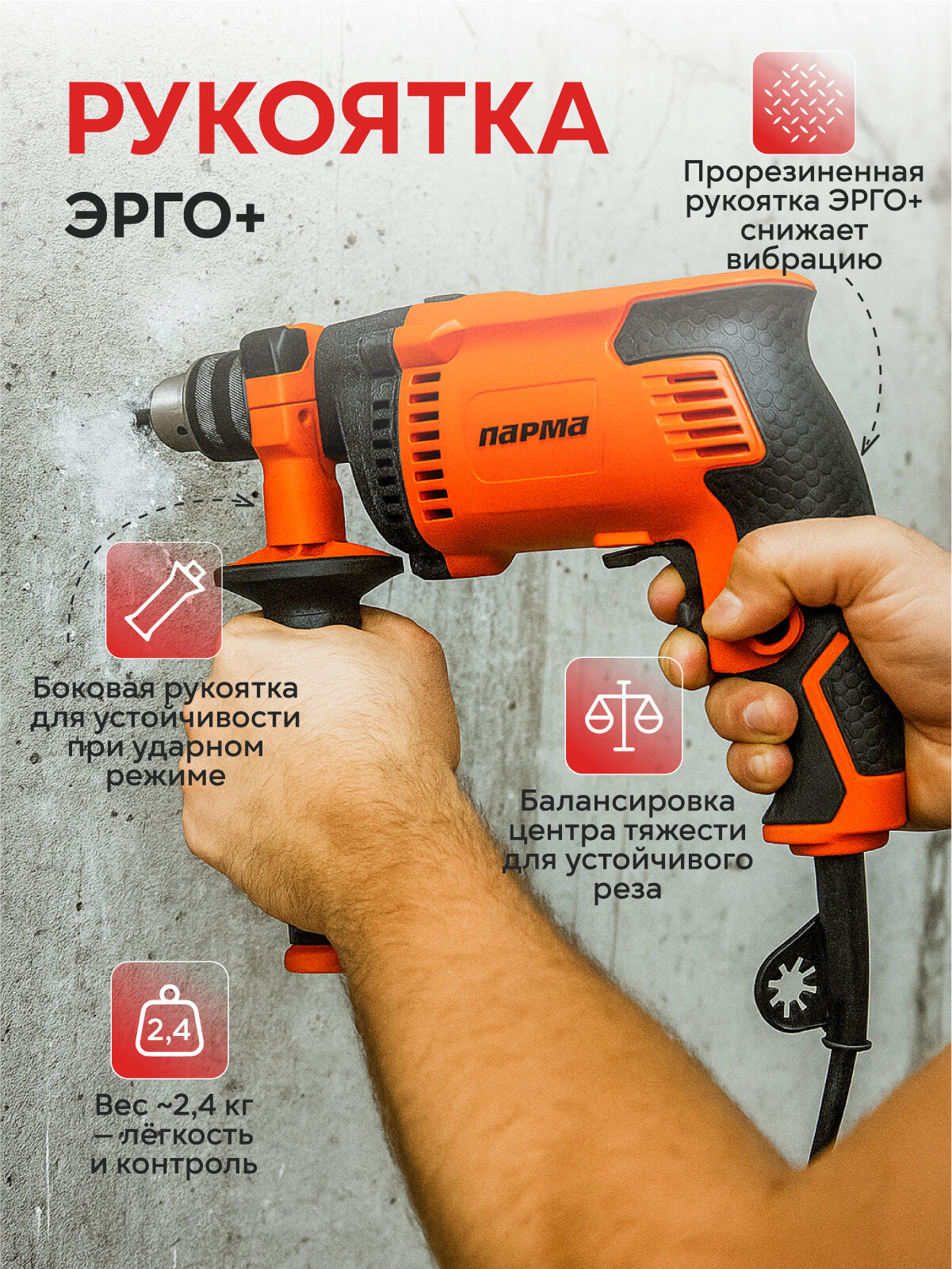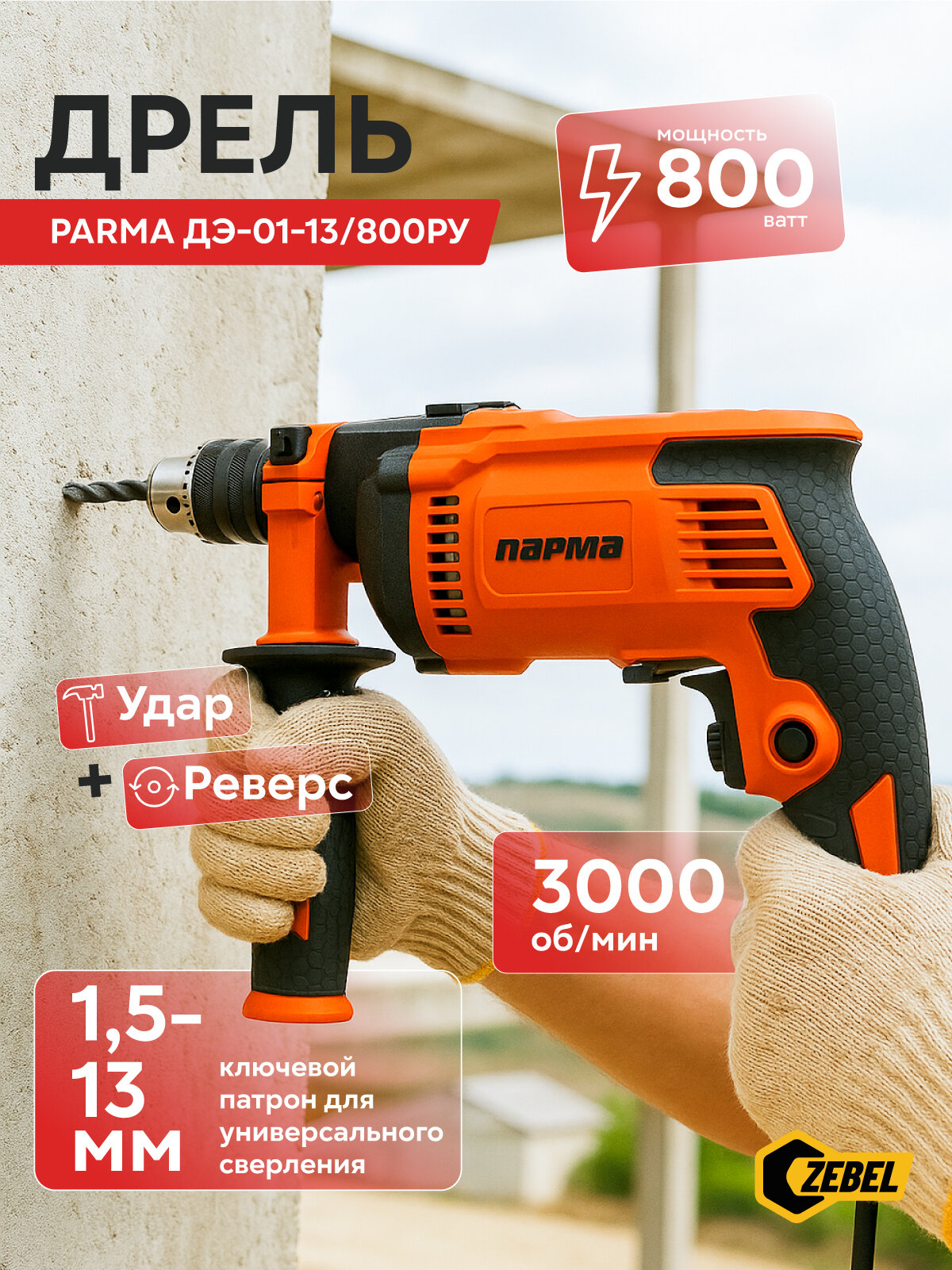 Купить Дрель электрическая ударная Парма ДЭ-01-13/800РУ с доставкой по всей России.