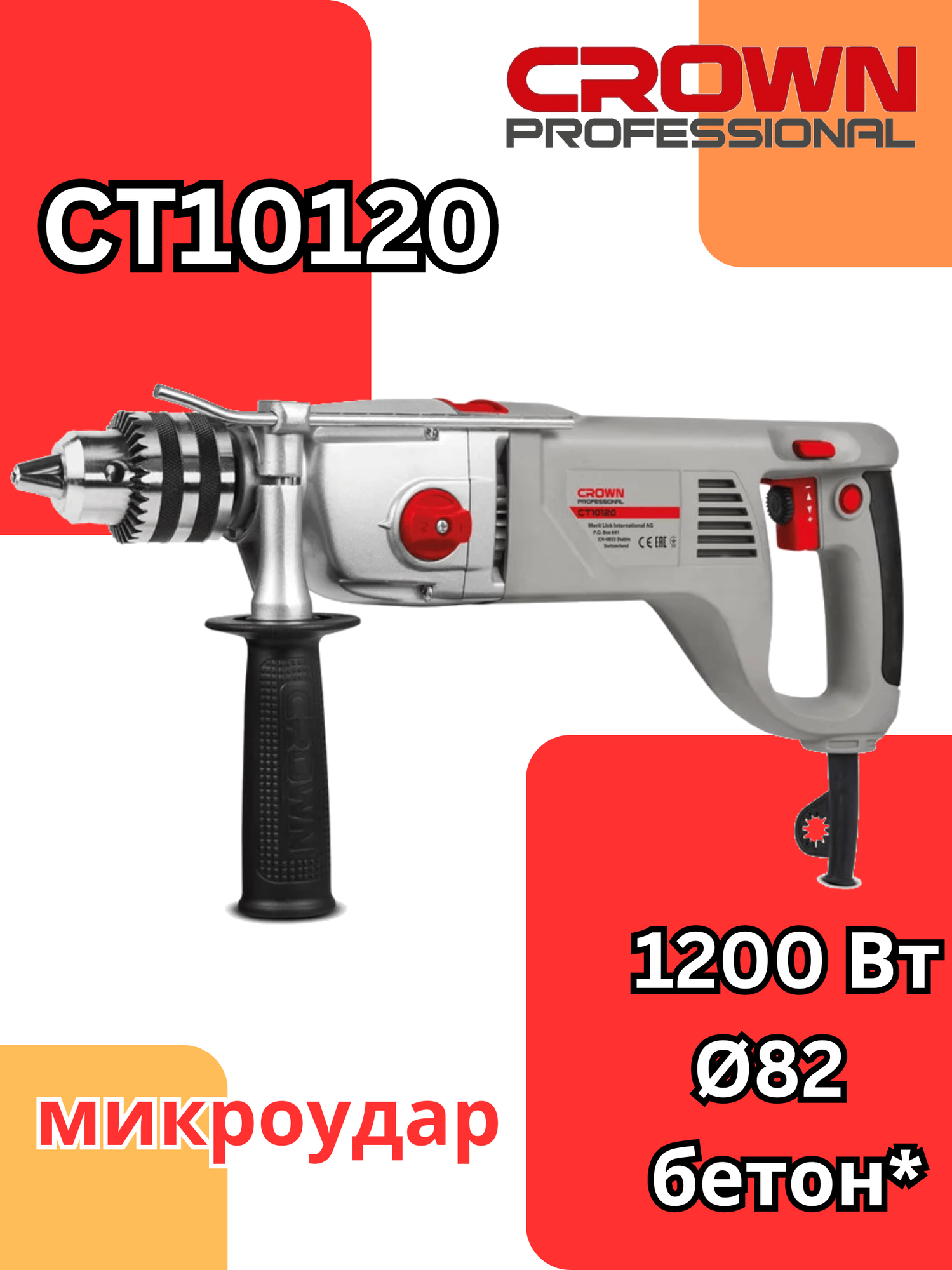 Дрель с микроударом CROWN CT10120 (сверление без воды коронками до 82 мм в бетоне): сравнение цен, характеристики, фото, актуальное наличие и цены.