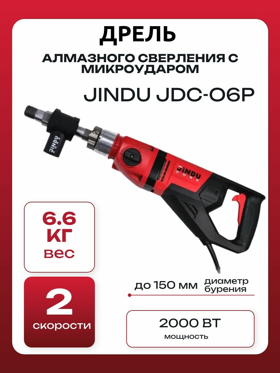 Алмазная дрель с микроударом Jindu JDC06P — это мощный электрический инструмент, созданный для бурения с акцентом на эффективность и скорость. Она разрабатывалась для профессионалов, предоставляя возможность выполнять сложные задачи с высоким уровнем удобства и безопасности.