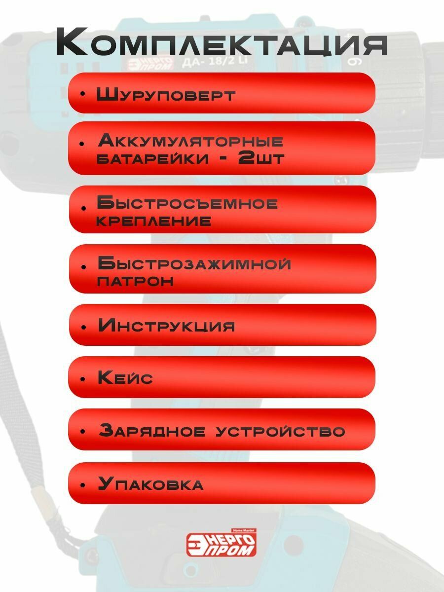 Купить Дрель шуруповерт аккум. «Энергопром Home Master» ДА-18/2 Li (2 акк, 18В/2ач) с доставкой по всей России. Дрель шуруповерт аккум. «Энергопром Home Master» ДА-18/2 Li (2 акк, 18В/2ач): сравнение цен, характеристики, фото, актуальное наличие и цены.