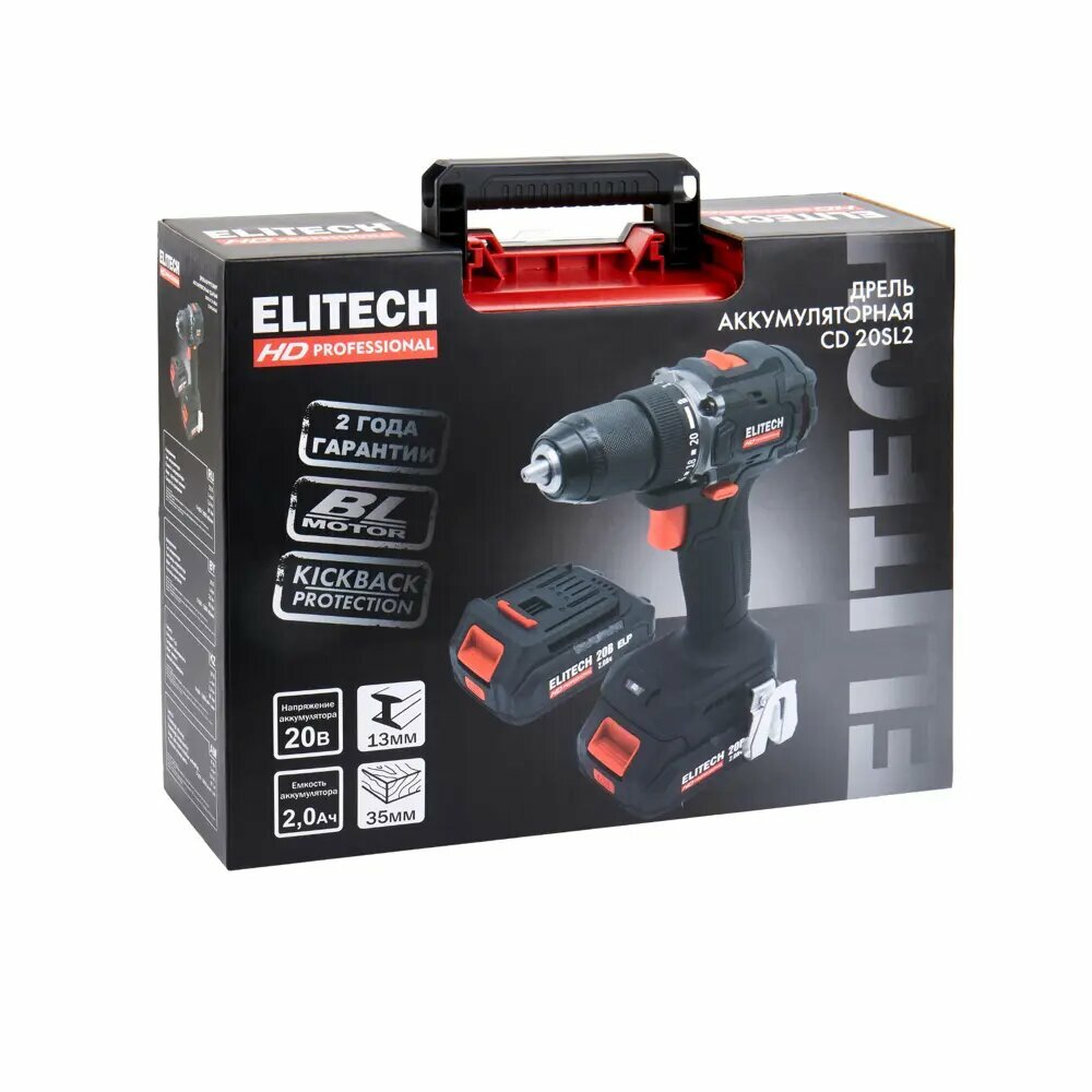 Купить Дрель-шуруповерт аккумуляторная бесщеточная Elitech HD CD20SL2, 20 В Li-Ion 2×2 Ач с доставкой по всей России. Дрель-шуруповерт аккумуляторная бесщеточная Elitech HD CD20SL2, 20 В Li-Ion 2×2 Ач: сравнение цен, характеристики, фото, актуальное наличие и цены.