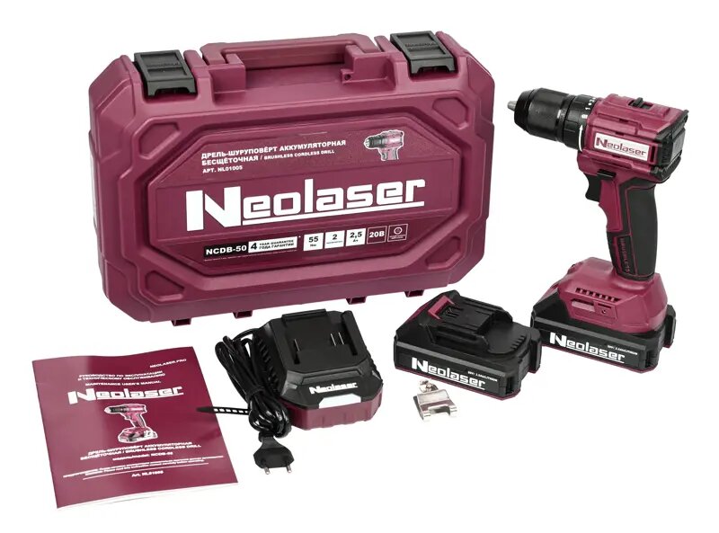 Купить Дрель-шуруповерт аккумуляторная бесщеточная Neolaser NCDB-50, 20 В Li-ion 2×2.5 Ач с доставкой по всей России.