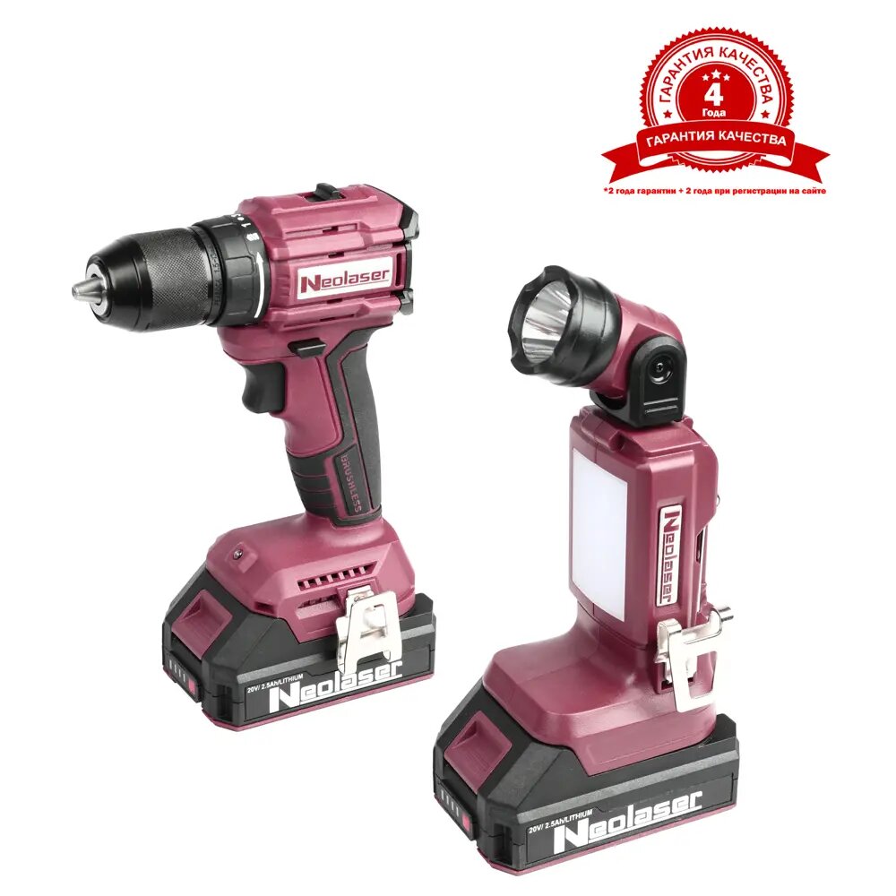 Дрель-шуруповерт аккумуляторная бесщеточная Neolaser NCDB-50-T, 20 В Li-ion 2×2.5 Ач фонарь в комплекте: сравнение цен, характеристики, фото, актуальное наличие и цены.