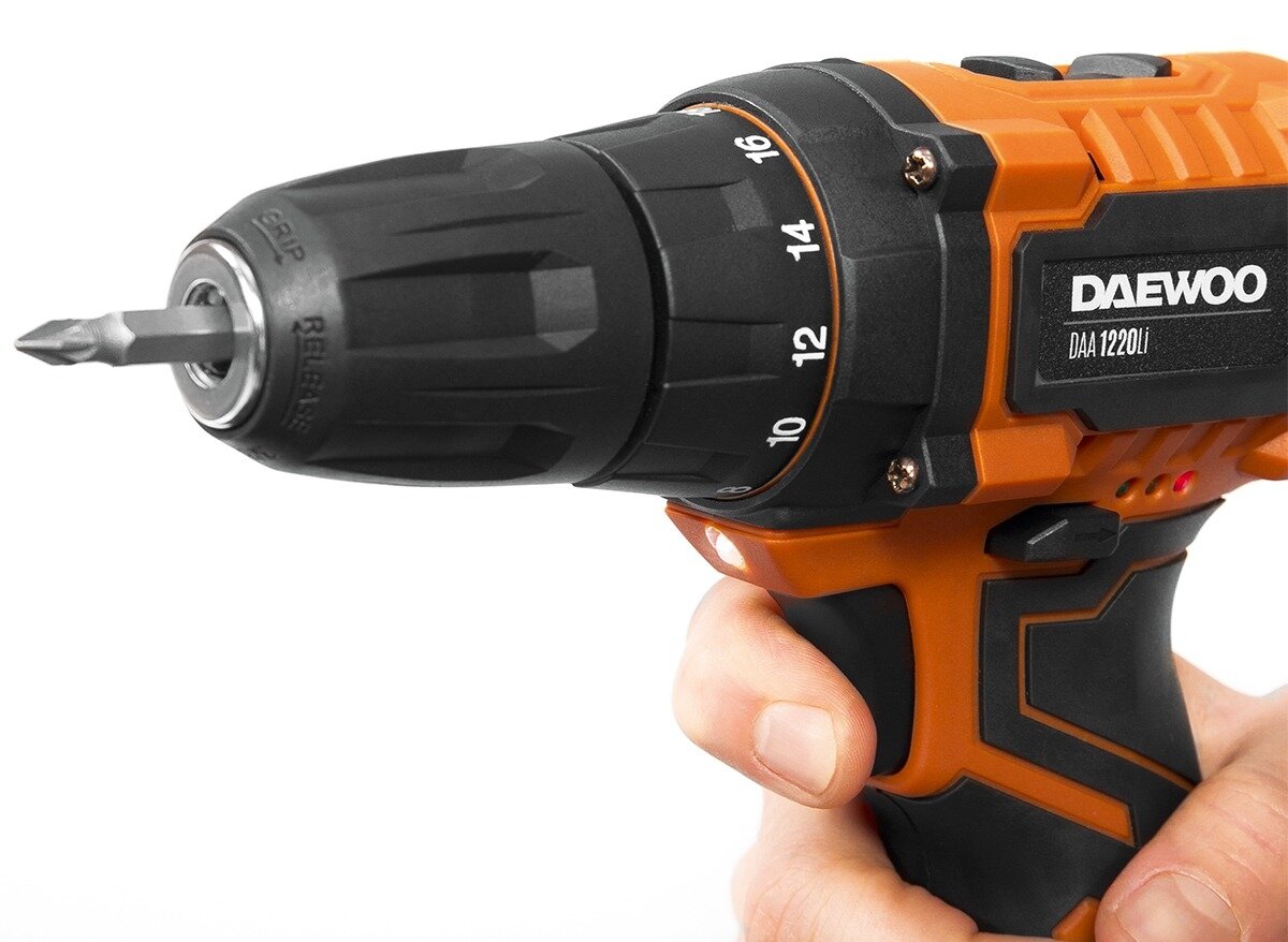 Дрель-шуруповерт аккумуляторная DAEWOO / Дэу DAA 1220Li с подсветкой, в кейсе, 12В, Li-Ion 1.5А/ч, 30Нм, 2 скорости / электроинструмент: сравнение цен, характеристики, фото, актуальное наличие и цены.