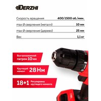 Купить Дрель-шуруповерт аккумуляторная DERZHI 12В, 1500 об. в мин. 2 аккумулятора 28 Нм, подсветка -фонарик, кейс инструменты с доставкой по всей России.