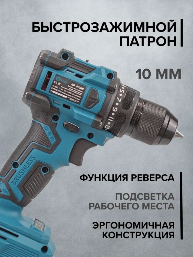Купить Дрель-шуруповерт аккумуляторная Edon AD-21CBL, 21В, бесщеточная , 2АКБ с доставкой по всей России.