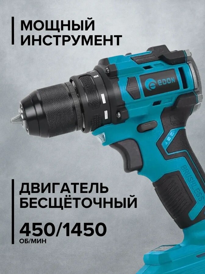 Дрель-шуруповерт аккумуляторная Edon AD-21CBL, 21В, бесщеточная , 2АКБ