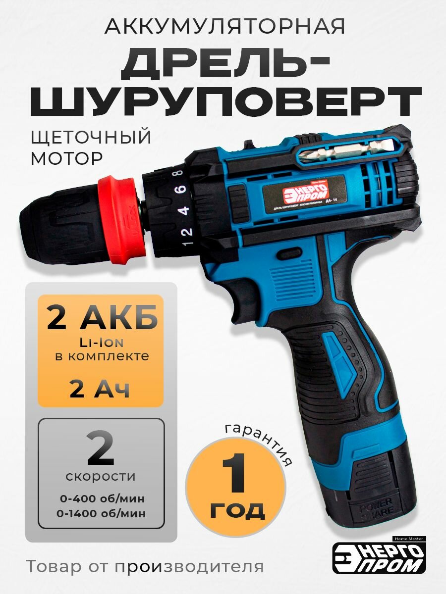 Купить Дрель-шуруповерт аккумуляторная «энергопром Home Master» ДА-14, 2Ач, 35 НМ, быстросъемный патрон с доставкой по всей России.