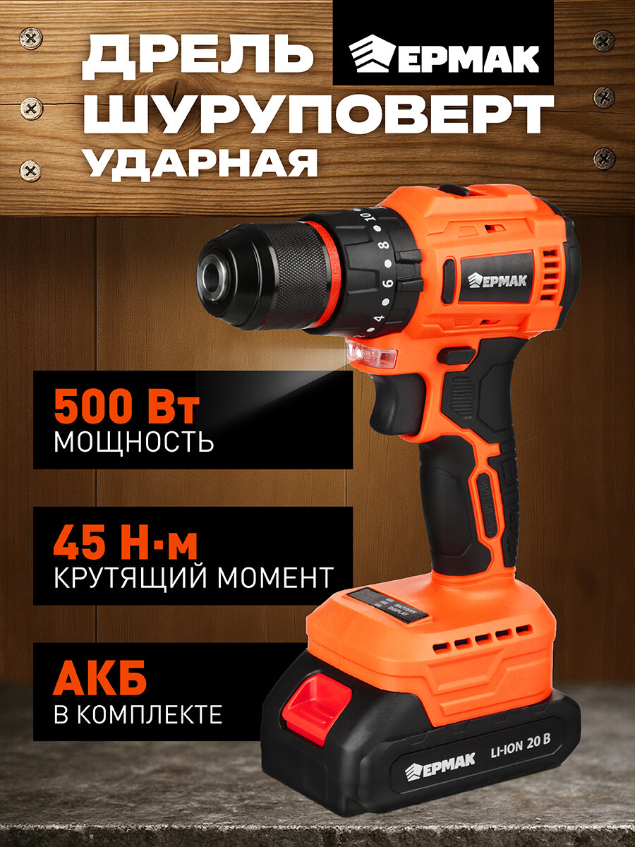 Купить Дрель-шуруповерт аккумуляторная ЕРМАК/ шуруповерт ударный 500 Вт с доставкой по всей России. Дрель-шуруповерт аккумуляторная ЕРМАК/ шуруповерт ударный 500 Вт: сравнение цен, характеристики, фото, актуальное наличие и цены.