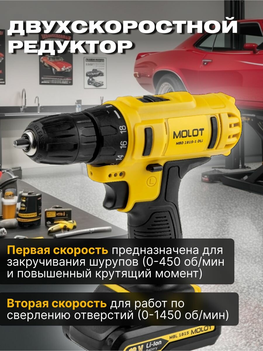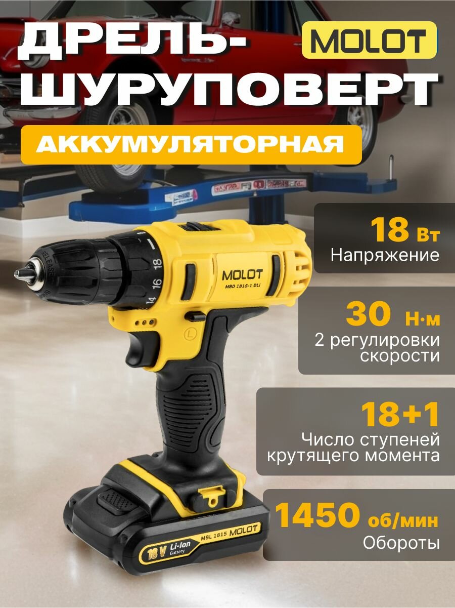 Купить Дрель-шуруповерт аккумуляторная MOLOT MBD 1815-1 DLi с АКБ и ЗУ (0329136) с доставкой по всей России. Дрель-шуруповерт аккумуляторная MOLOT MBD 1815-1 DLi с АКБ и ЗУ (0329136): сравнение цен, характеристики, фото, актуальное наличие и цены.