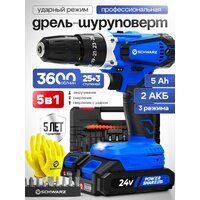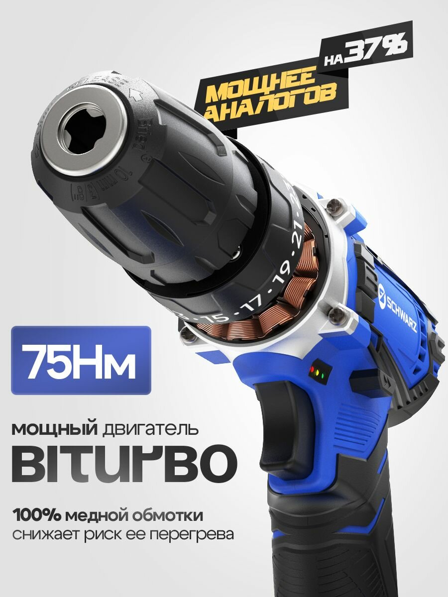 Купить Дрель-шуруповерт аккумуляторная Schwarz 2 АКБ 75НМ, 3600 об/мин, 24В, 5 Ач с доставкой по всей России.
