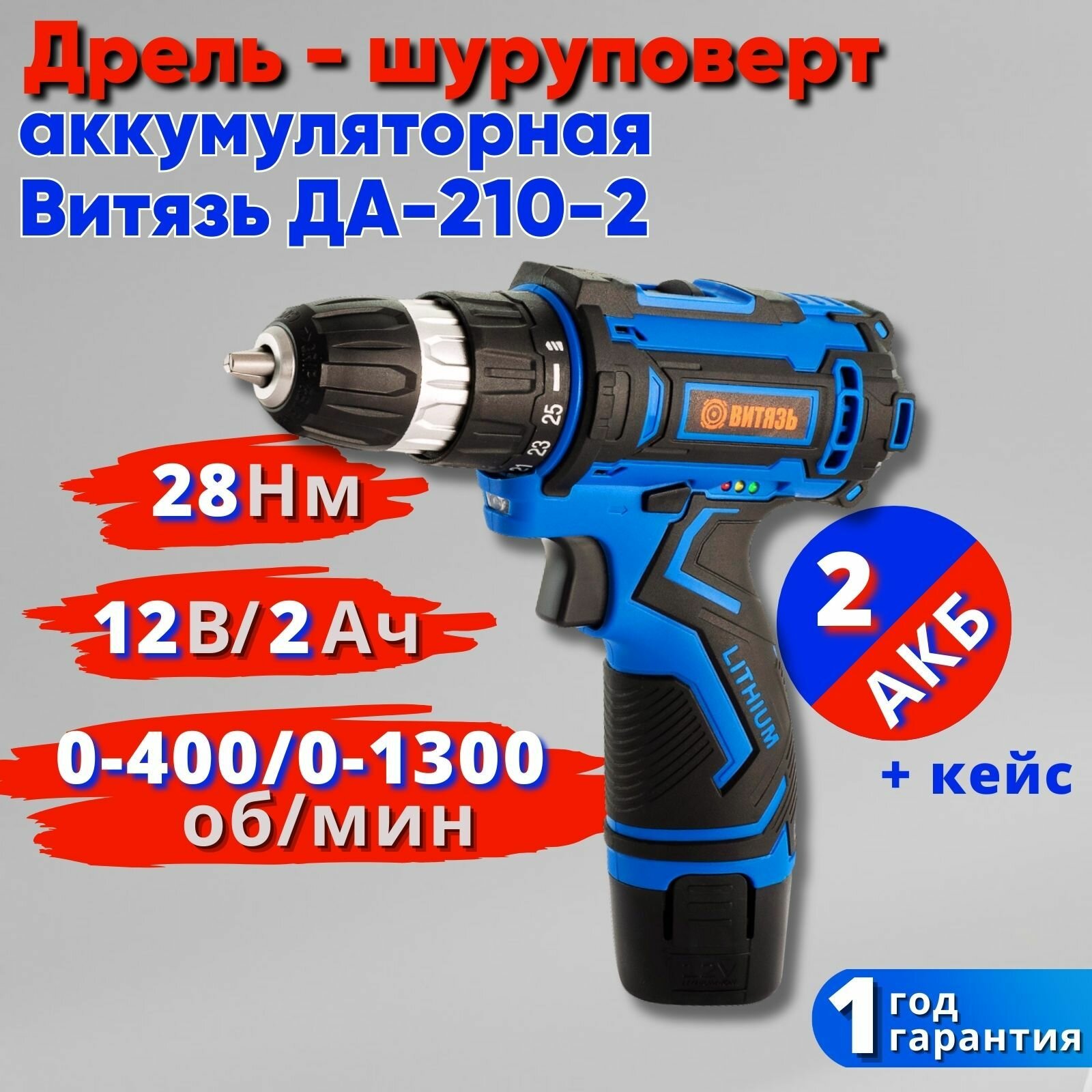 Дрель шуруповерт аккумуляторный Витязь ДА-210-2, 12 В,2 А*ч, 28 Н*м, 2 АКБ, кейс): сравнение цен, характеристики, фото, актуальное наличие и цены.