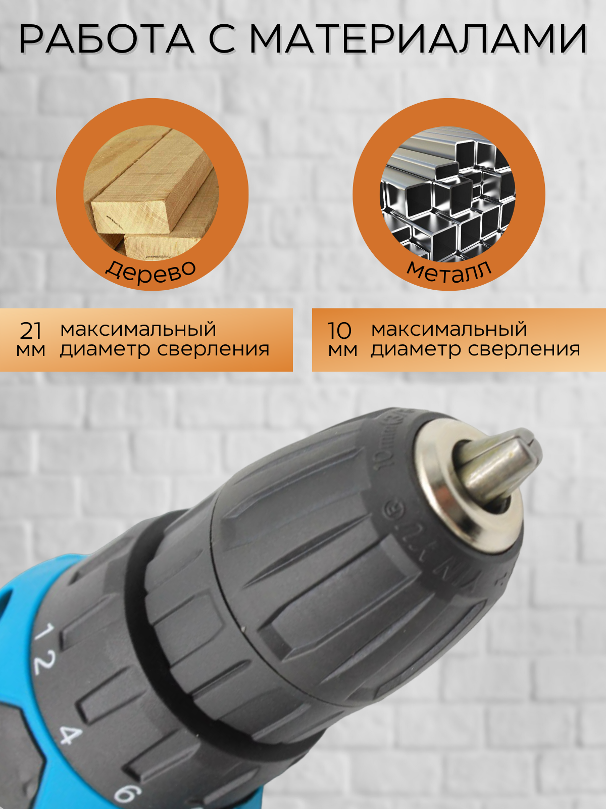 Купить Дрель Шуруповерт аккумуляторный 18V 28 HM 2 акб li-ion в кейсе c набором инструментов с доставкой по всей России.