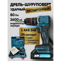 Купить Дрель шуруповерт аккумуляторный бесщеточный Мукинс, 2 АКБ 24В , 24 насадки и зарядная станция в наборе с доставкой по всей России.