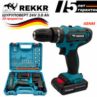 Дрель-шуруповерт аккумуляторный REKKR CD048BL, 48Нм, 2 аккумулятора 24В 3.0Ач, патрон 10мм, кейс с набором, зарядка: сравнение цен, характеристики, фото, актуальное наличие и цены.