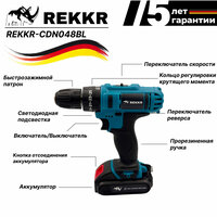 Купить Дрель-шуруповерт аккумуляторный REKKR CDN048BL, 48Нм, 2 аккумулятора 24В 3.0Ач, патрон 10мм, кейс с набором, зарядка с доставкой по всей России.