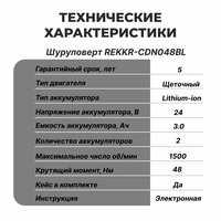 Дрель-шуруповерт аккумуляторный REKKR CDN048BL, 48Нм, 2 аккумулятора 24В 3.0Ач, патрон 10мм, кейс с набором, зарядка: сравнение цен, характеристики, фото, актуальное наличие и цены.