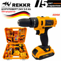 Дрель-шуруповерт аккумуляторный REKKR CDN048YL, 48Нм, 2 аккумулятора 24В 3.0Ач, патрон 10мм, кейс с набором, зарядка: сравнение цен, характеристики, фото, актуальное наличие и цены.