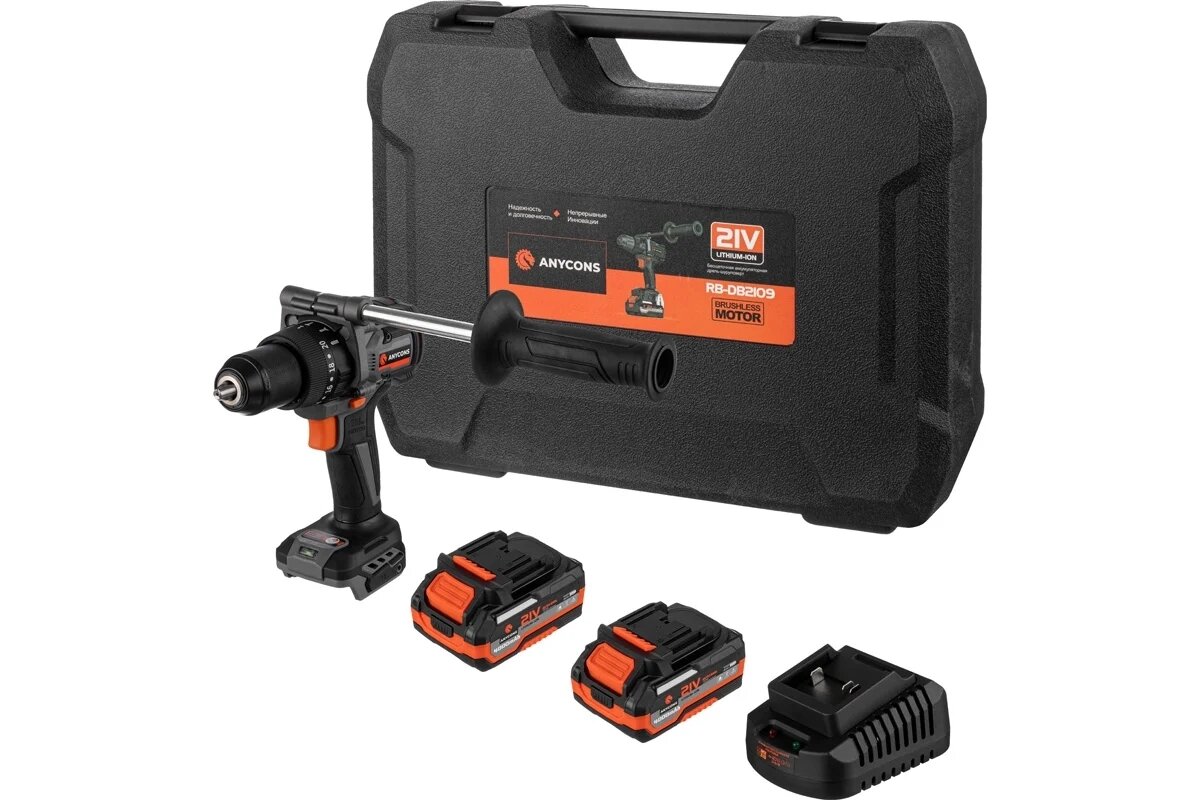 Купить Дрель-шуруповерт Anycons RB-DB2109, Аккумуляторная, 21В, 2 АКБ, Кейс, Ударная с доставкой по всей России.