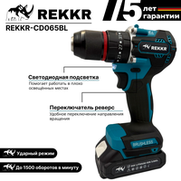 Купить Дрель-шуруповерт бесщеточный REKKR CD065BL, 65Нм, 2 аккумулятора 24В 3.0Ач, патрон 10мм, кейс с набором, зарядка с доставкой по всей России.